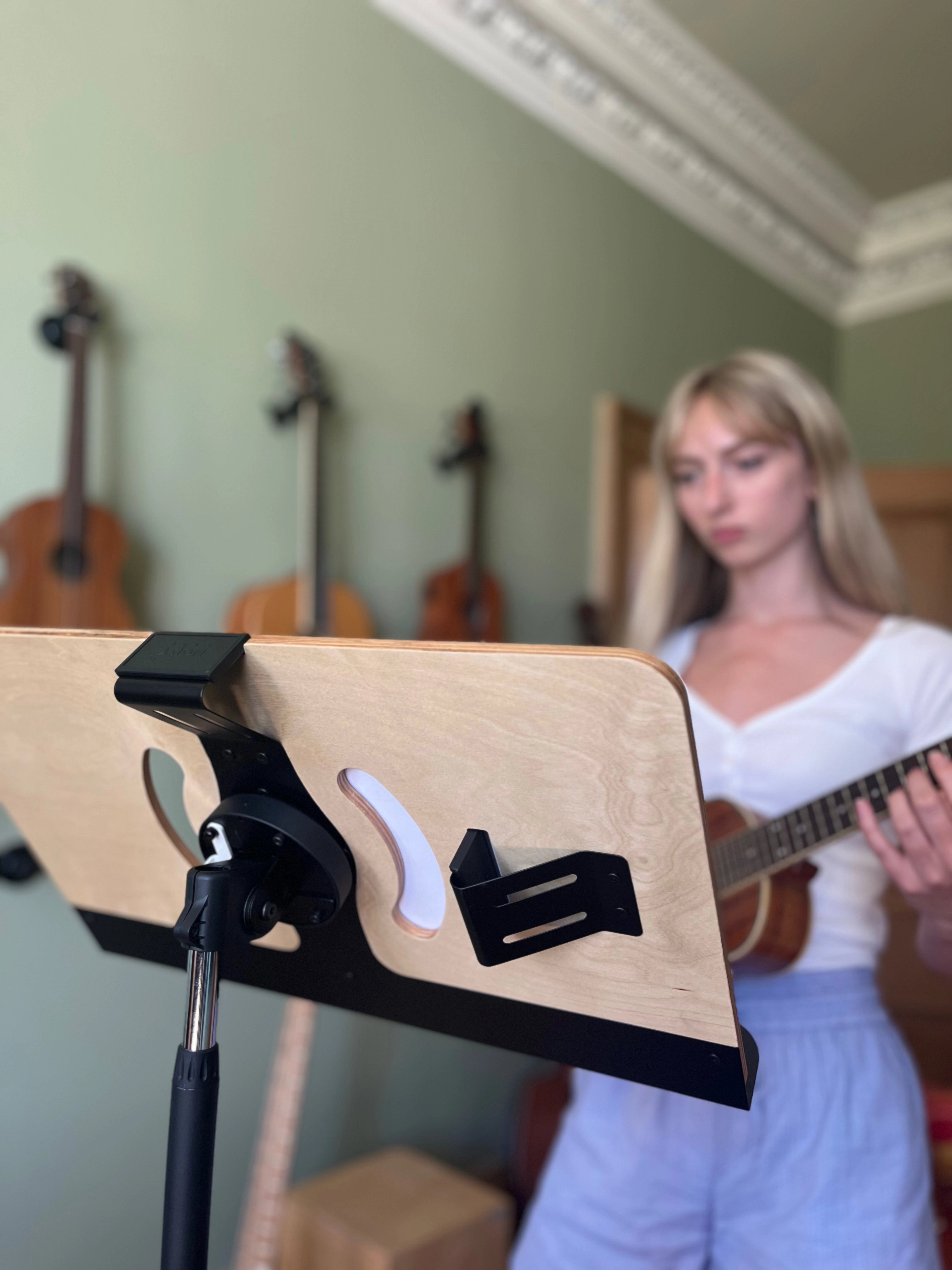 Strong, padded Secure Clips hold your tablet or laptop firmly, without interfering with your view of the music. With a large shift from classic sheet music to using tablets and laptops, security for devices was at front of mind in the design. All our media plates are equipped with easy to use secure clips which won’t scratch or damage laptops or tablet screens. Focus on playing instead of worrying about your devices.