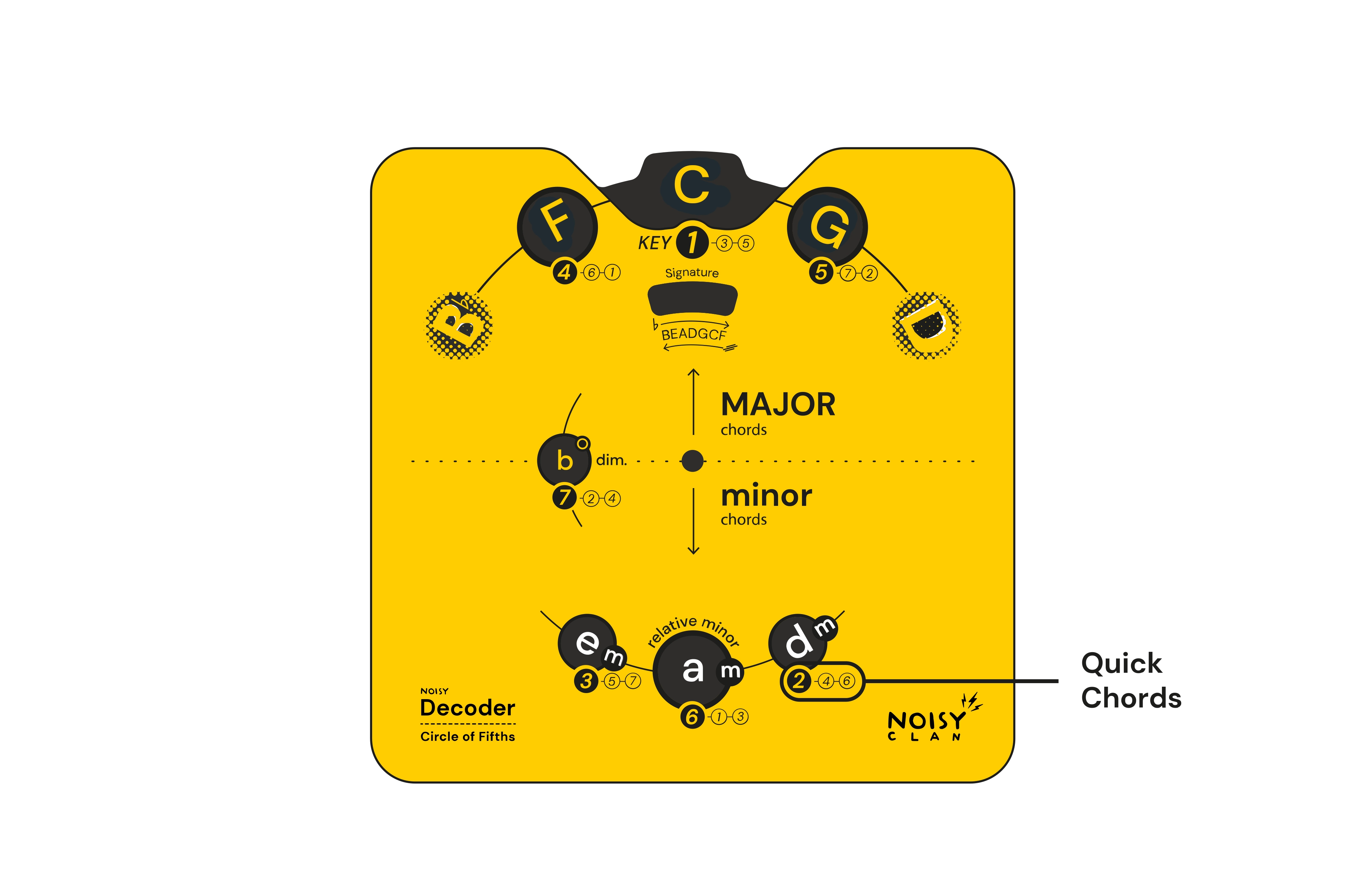 Use Quick Chords reminders under every window to build triads for each chord without having to turn the wheel.