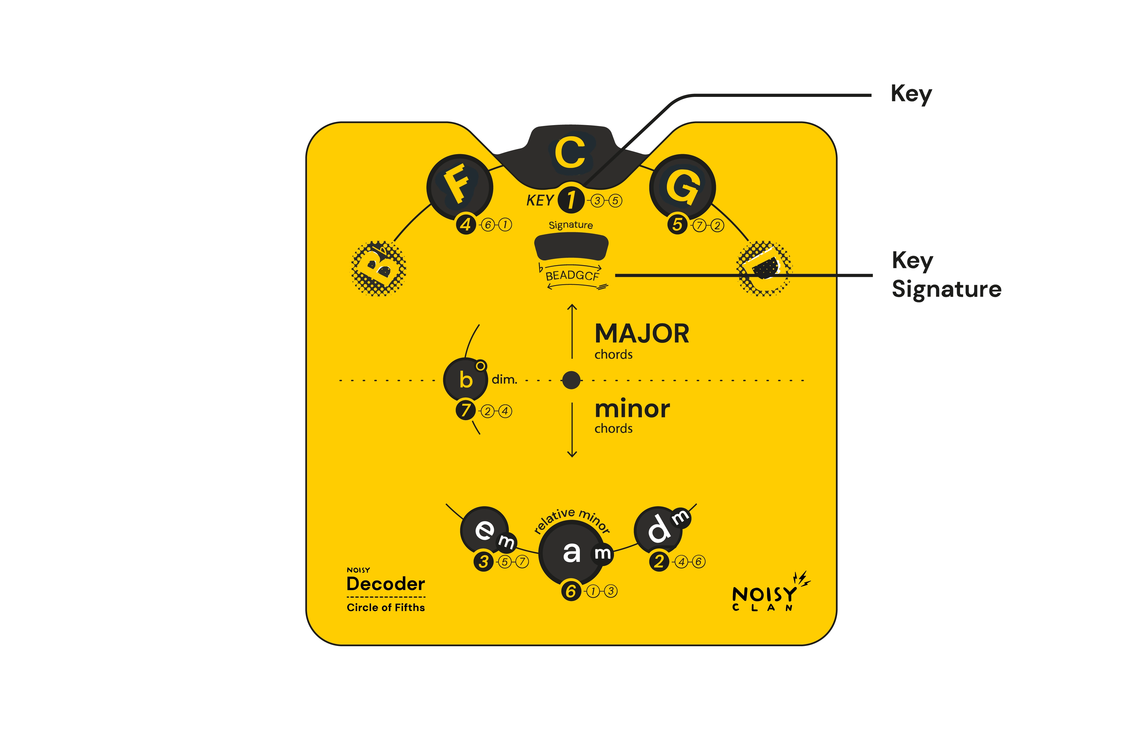 The exposed note at the top- your anchor! The rest of the exposed notes are telling you what sound good in this key. The Key Signature tells you which notes and chords will be flat or sharp in the chosen key.