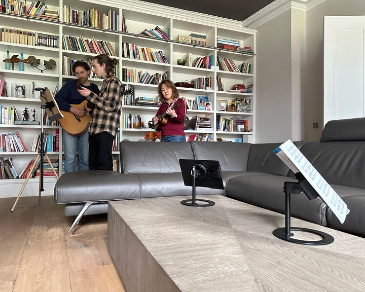 This beautiful music stand system is robust and secure. Made of premium materials and designed for all media- including laptops and tablets. Bases and Media Plates are interchangeable with a satisfying click.